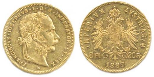 8 Florin = 20 Franken 1887 b.zn._zc.nep.hr.