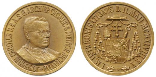 Intronizační medaile 1948, poprsí arcibisk.vpravo / znak sign.: Doležal bronz 50 mm Taul 406
