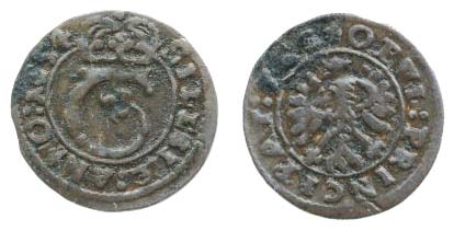 Haléř 1654 b.zn., Těšín-Görloff MKČ 1364 var.: ANNO: 1654 / PRINCIPAT:TES