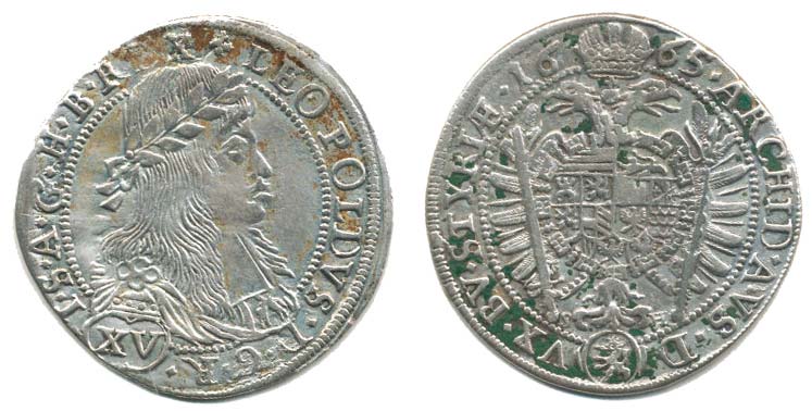 XV kr. 1665 S-H, Štýrsko-Graz Hol.65.3,2 "R" _mír. nedor., patin.skvr., tém.