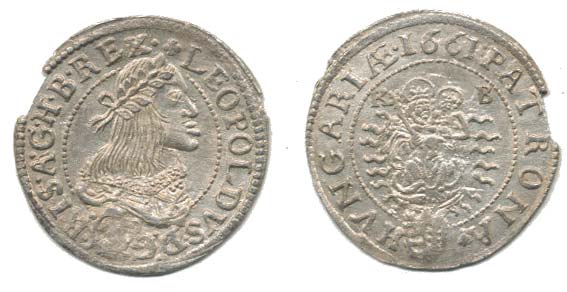 3 kr. 1661 KB Hal. 387 (zn.u hlavy), Hus. 1463 _dr.vada stř. u hr., jinak