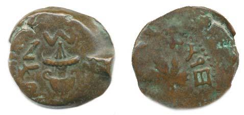 AE 16 prutah, Amfora / vinný list Hendin 661