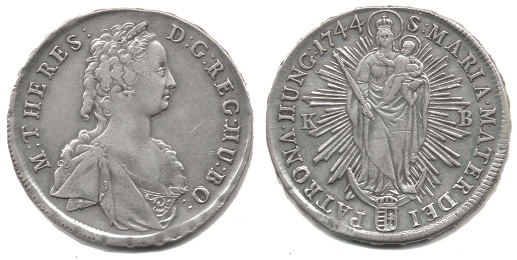 Tolar 1744 K-B, Kremnica Husz. 1670_hr.ražbou, rys., tém