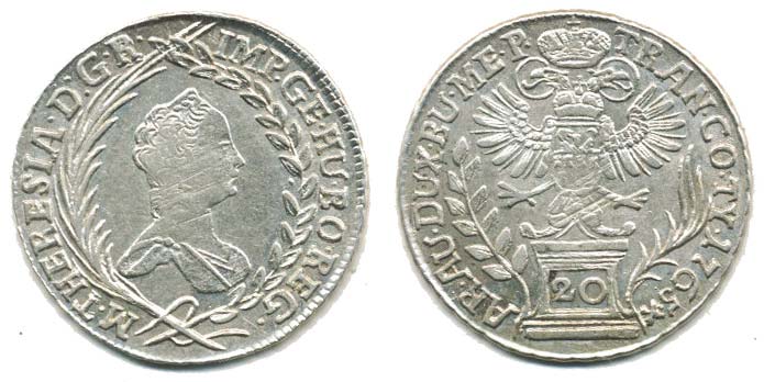 20 kr. 1765 b.zn, Sedmihrady "R"_just.
