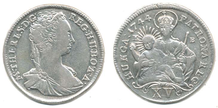 XV kr. 1744 K-B, Kremnica Nov.95_tém.