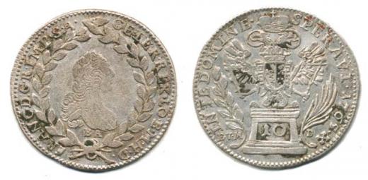 10 kr. 1765 BA/EVM-D, posmrtná ražba(1766) "R"_tmavé skvr.