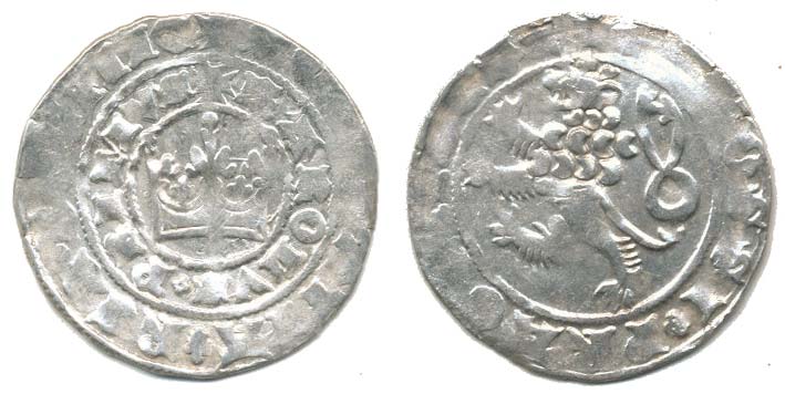 Pražský groš, var.: za KAROLVS je čtyřlístek_část. nedor.