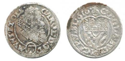 3 kr 1616 HT, Sa 132 var.: poprsí v okruží / v rv. okruží pouz e kolem erbu, opis CAP. V. SL. "R"