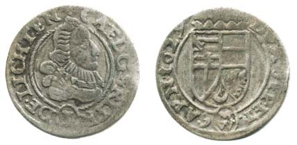 1 kr. 1629 MW SA 42, ale minc. zn. pod erbem / hodnota pod p oprsím opis: PR()DE.LICHTEN_mír. nedor. opis, tém.