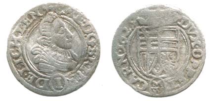 1 kr. 1629 MW SA 42, ale minc. zn. pod erbem / hodnota pod p oprsím opis: PR()DE.LICHTEN
