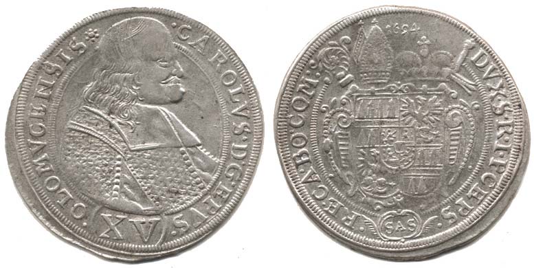 XV kr. 1694 SAS SV 390 G1/F1 var. za COM: dvojtečka, nad A ve značce není tečka