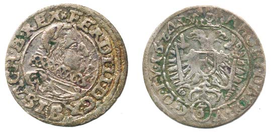3 kr. 1624 B/CW, Brno-Wohnsiedler MKČ 886 var.: minc. značka v perličkové závorce, opis: FERDI.II.D:G.R() I..... / ARCHI.D.A.D.B V() G. O.TY. 16Z4 cw (chyba "G" místo C)