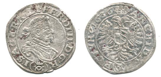 3 kr. 1636, Vídeň-Vestenburg "R" Her. 1057 _nep.nedor., tém.