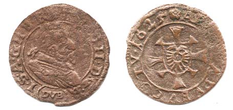 1 kr. 1625 DvB, Nisa-von Brenen jako MKČ 1090 - měděný střížek !! (dobový padělek ?) "RR"