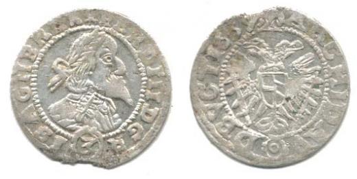 3 kr. 1639 O, Olomouc-Schäfer "R" MKČ 1239 var. minc. zn. v ozdobném kroužku_vada stř. na hr., jinak