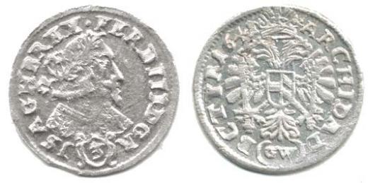 3 kr. 1641 GW, Kladsko-Werner MKČ 1338 "RR" var.:nad hlav ou tečka, mincm. zn. v závorce - typ bez oboustr. vnitřního kruhu