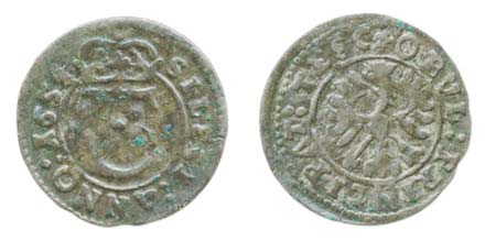 Haléř 1654 b.zn., Těšín-Görloff MKČ 1364 var.: SILESI:ANNO :1654 / OBVL:PRINCIPAT:TESC