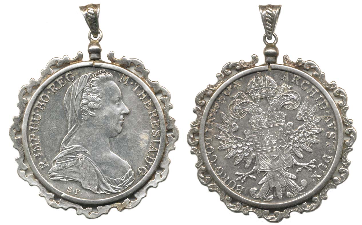 Tolar 1780 SF, Günzburg - novoražba, zasazená do kroužku s točený m Ag rámečkem s přívěškem "pěkná práce" 36,00 g