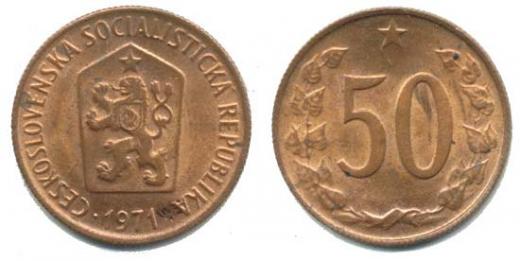 50 hal. 1971 - tečka pouze před datací (chyboražba) nepubliková no !