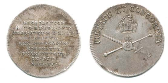 Malý žeton k volbě za římského císaře 30.9. 1790 ve Frankfurtu Ag 20 mm Novák XVI/E/11/b_hr., ťuk.