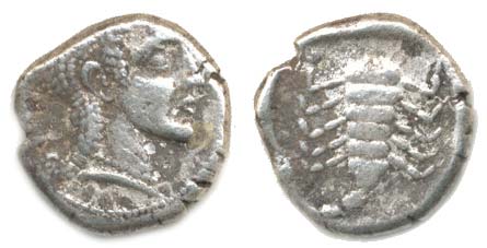 Statér, Ženská hlava / štír 17 mm 5,53 g /viz aukce LAC Londýn 23.8. 2016, pol. 243/ zřejmě novodobá napo dobenina