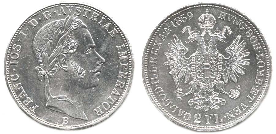 Dvouzlatník 1859 B_vl. rys. v Rv.
