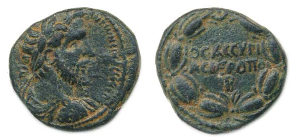 Syria: Hieropolis, AE 21, diassarion / v otevřeném věnci nápis ve třech řadách Sear 1494; Hieropolis BMC 13