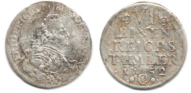 1/6 tolaru 1752 C KM 252 var.: po stranách minc. zn. tečky "R"