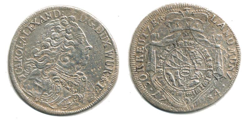 30 Kreuzer (1/2 Gulden) 1734 M KM 334 "RR" _zrnitý střížek