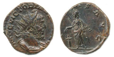 Antoninián, stoj.Pietas drží obětní misku nad oltářem PIETAS AVG RIC 57 var. "R"