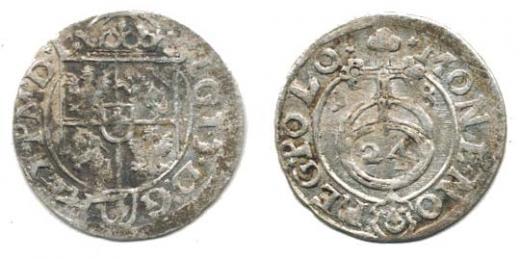 1/24 tol. 1618, Bydgošč-Danilovič Zag. 232 opis: REG*POLO* / SIGI.3*D.G()REX*PM*DL*_zbytek nález. patiny