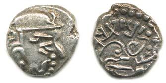 AR Drachma b.l., Hlava zprava / Trojzubec, Sri Sarwa Bhatraka 12 mm 2,00 g Mi 263