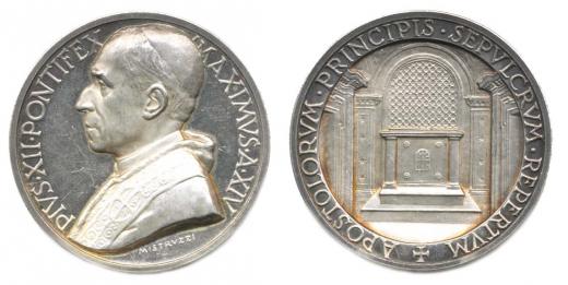 Pius XII., poprsí zleva, XIV. rok pontifikátu (1952) / Hrob první ho apoštola sv. Petra sign.: MISTRVZZI Ag 44 mm 39,1 96 g