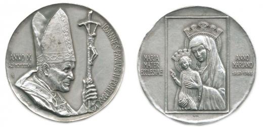 Joannes Paul II., X. rok pontifikátu / medaile na mariánský rok 1 987-1988 sign.: GIANDOMENICO Ag 986 38,581 g 44 mm