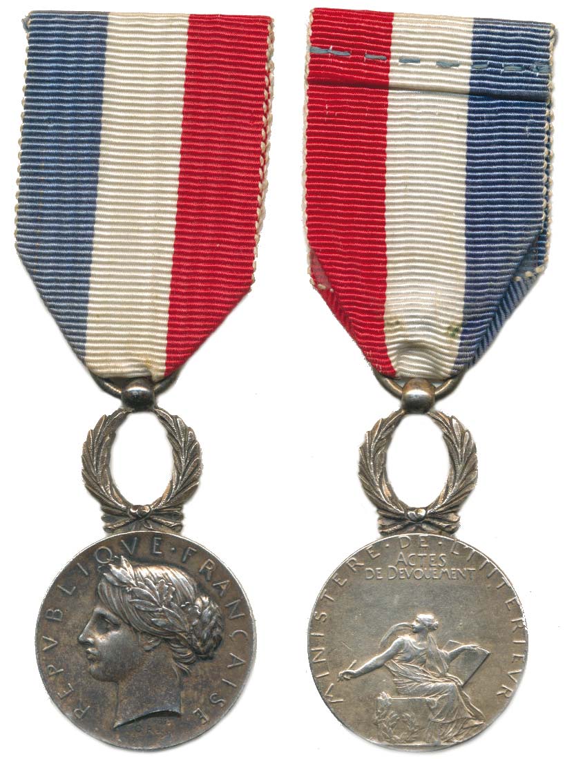 Medaile "MINISTERE DE L´INTERIEUR - ACTES DE DEVOUEMENT" (Ministerstvo vnitra - Za oddanost) sign.: O.Roty 1895 Ag 27 mm (vydání před r. 1939) SR 110