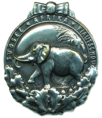 Koloniální odznak "Südsee Afrika Kiautschou", slon / Ges. Geschützt Nr. 33992 nové stříbro 35x40 mm Nim. 3307