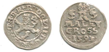 Malý groš 1593, Č.Budějovce-Mattighofer HN 28a tečky vedle datace / před jménem tečka "R"