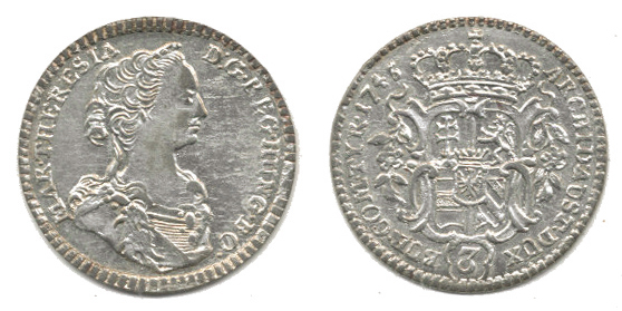 3 kr. 1745 b.zn., Tyroly Hall "R"