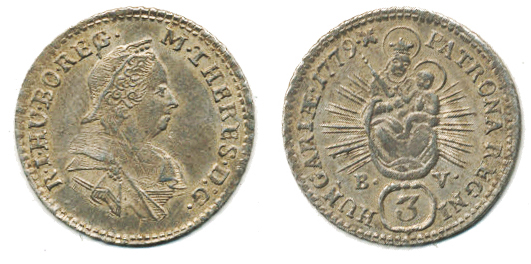 3 kr. 1779 B.-V., Nagybanya "R" Husz. 1733_mír. just.