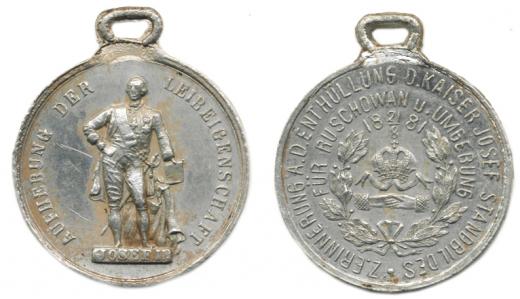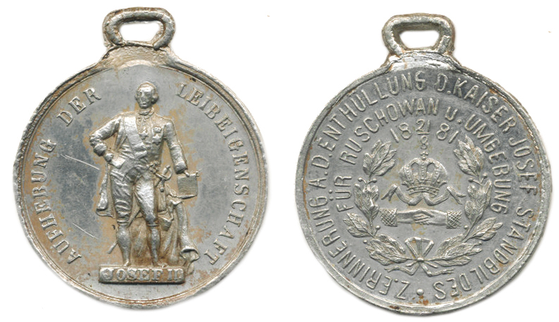 Ruschowan (Hrušovany okr. Litoměřice) - Odhalení pomníku Josefa I I. 21.8. 1881 Sn 30 mm orig. raž. ouško