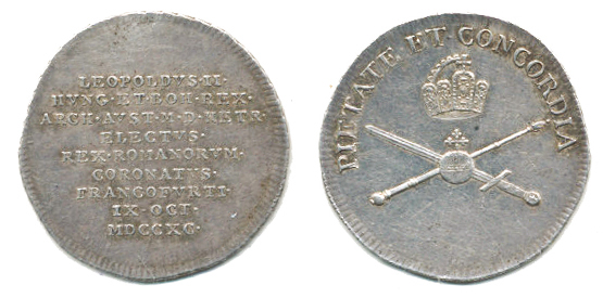 Malý žeton k volbě za římského císaře 30.9. 1790 ve Frankfurtu Ag 20 mm Novák XVI/E/11/b