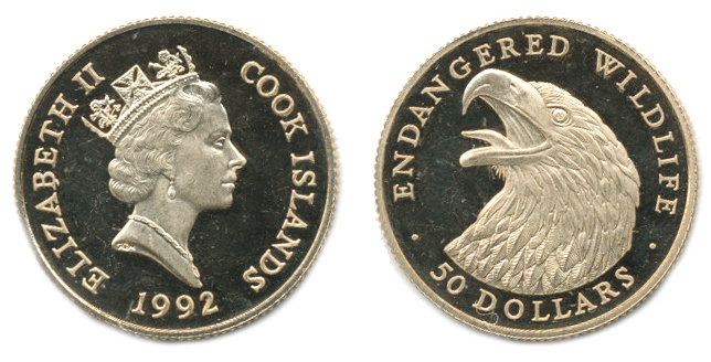 50 Dollars 1992 - Ohrožený živočich, Orel KM 129 Au 583 7,78 g