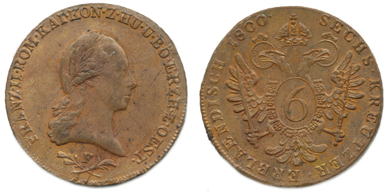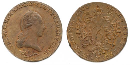 6 kr. 1800 F "R" "sbírkový"