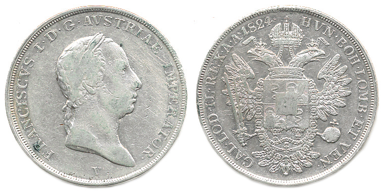 1/2 Scudo 1824 V "RR"