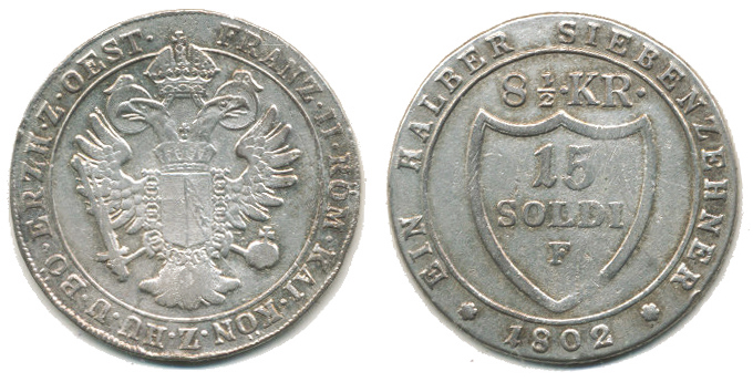 15 Soldi - 8 1/2 kr. 1802 F_mělčí ražba, jinak