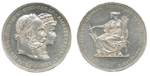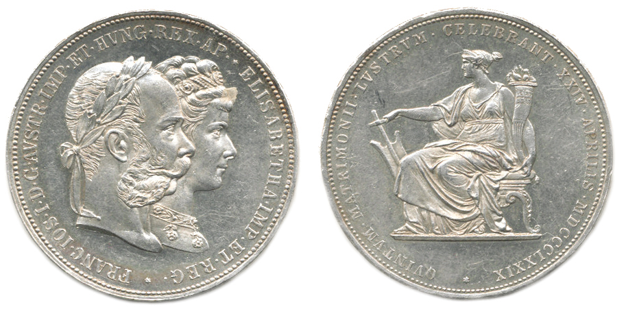 Dvouzlatník 1879 - Stříbrná svatba var.: tečka za ELISABETHA.