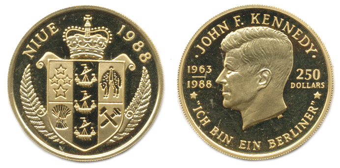 250 Dollars 1988 - J.F. Kennedy KM 20 Au 917 10,00 g