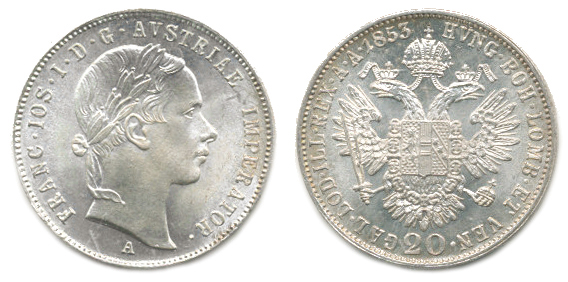 20 kr. 1852 A - hlava vpravo "excelentní stav"