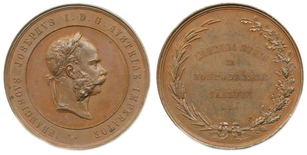 F.J.I., hlava zprava / Náhrada státu za hospodářské zásluhy sign.:TAUTENHAYN český text Cu 40 mm