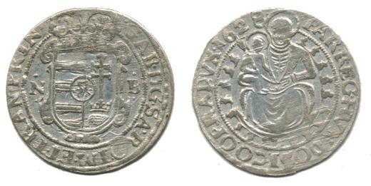Groschen 1628 NB, Nagybánya Resch 339 "R"_mír. just.